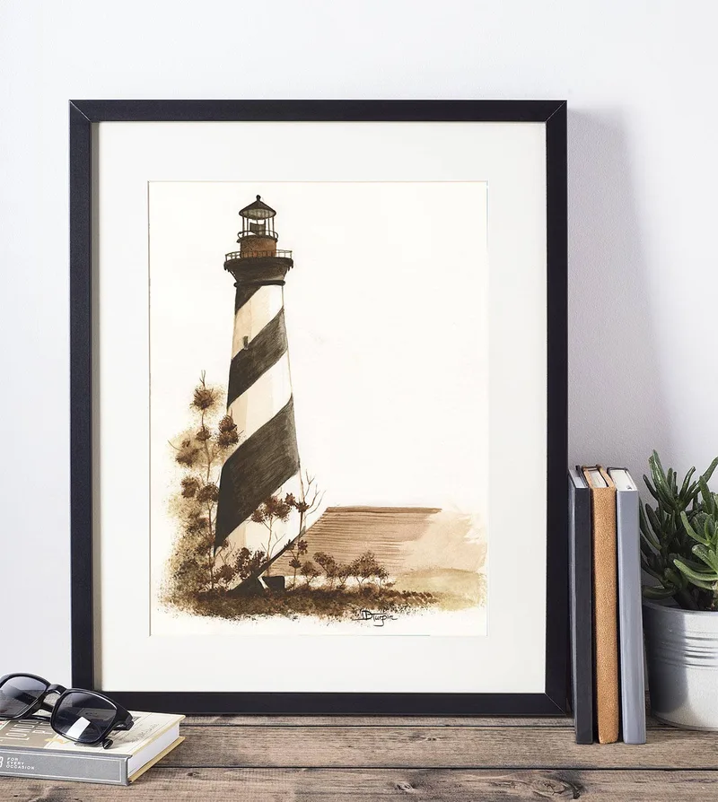 Cape Hatteras Lighthouse Watercolor Print, Nautical, Beach Decor