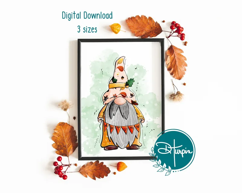 Autumn Gnome Digital Print | Fall Printable | Autumn Wall Art | Gnome Decor