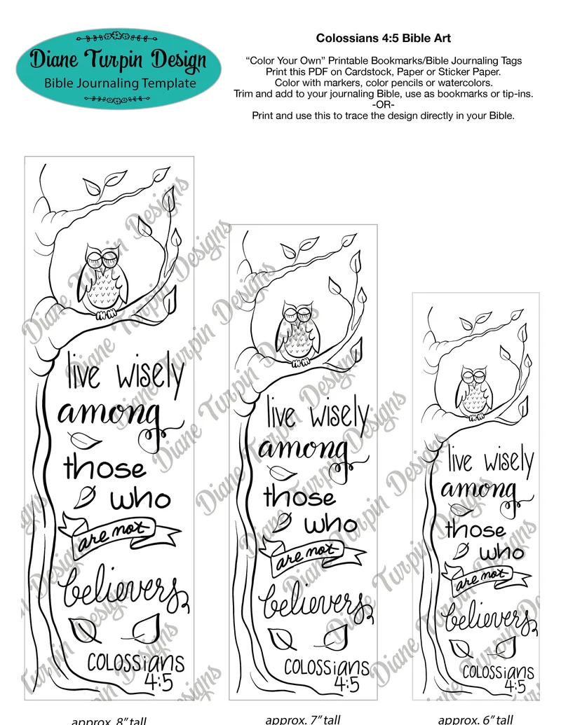 Bible Journaling Verse Art - Margin Art - Bookmark featuring Colossians 4:5 Live Wisely