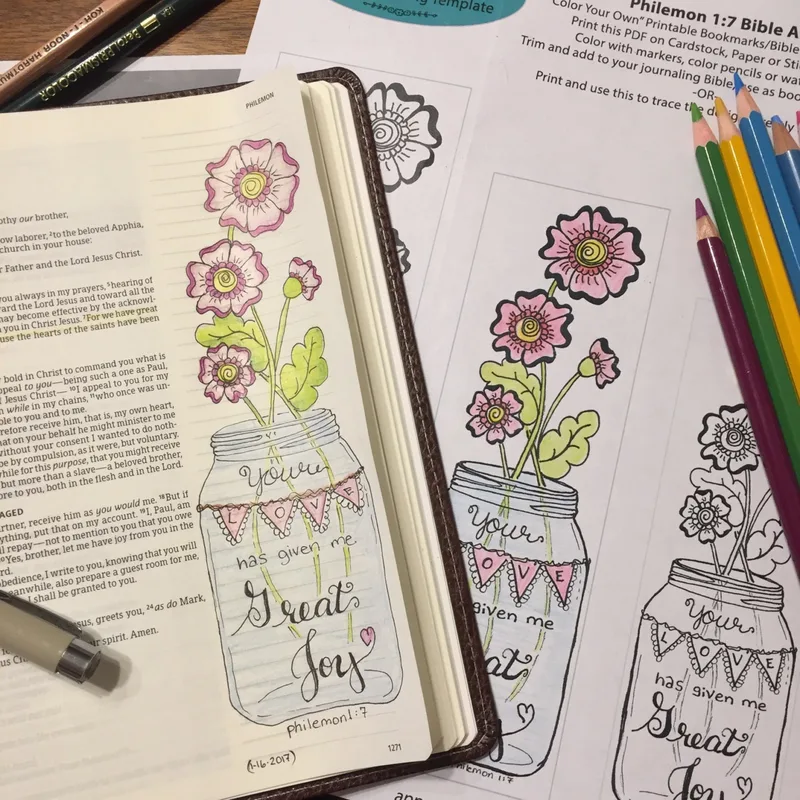 Bible Journaling Verse Art - Margin Art - Bookmark featuring Philemon 1:7 - Great Joy