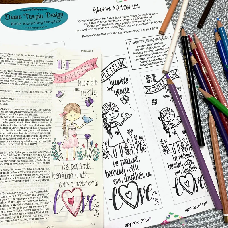 Bible Journaling Verse Art - Margin Art - Bookmark featuring Ephesians 4:2 - Love One Another