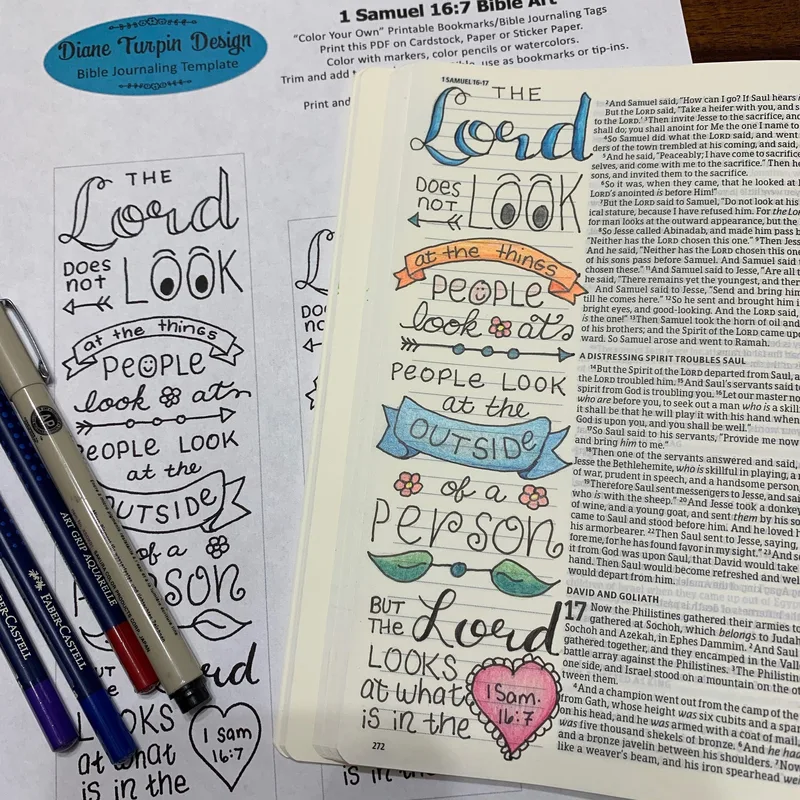 Bible Journaling Verse Art - Margin Art - Bookmark featuring I Samuel 16:7