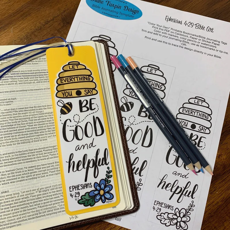 Bible Journaling Verse Art - Margin Art - Bookmark featuring Ephesians 4:29 - Bee Good and Helpful
