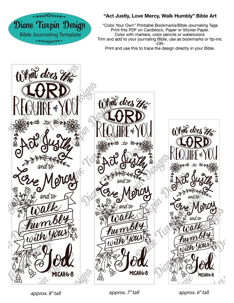 Bible Journaling Verse Art - Margin Art - Bookmark featuring Act Justly, Love Mercy, Walk Humbly