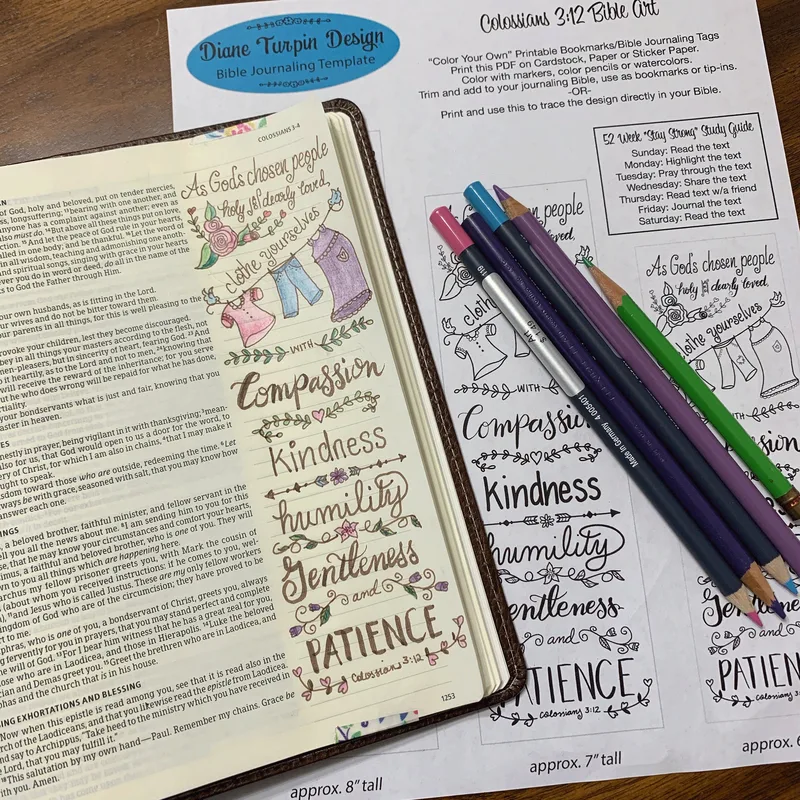Bible Journaling Verse Art - Margin Art - Bookmark featuring Colossians 3:12 Clothe yourself with compassion, kindness