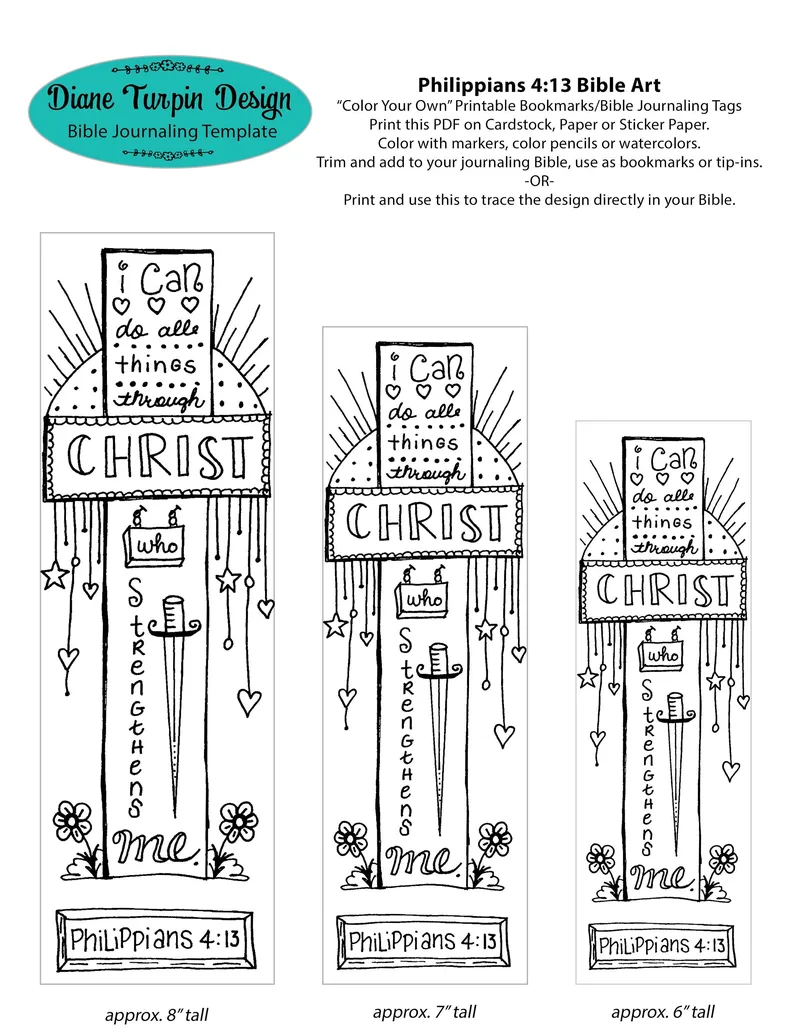 Bible Journaling Verse Art - Margin Art - Bookmark featuring Philippians 4:13, I can do all things through Christ who strengthens me.