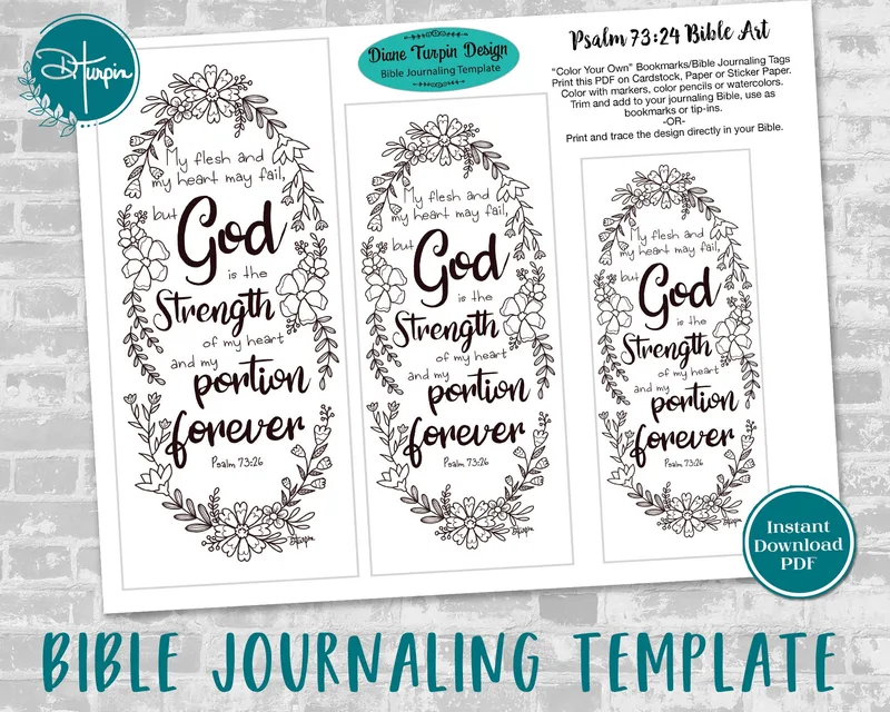 Bible Journaling Verse Art - Margin Art - Bookmark featuring Psalm 73:26 - God is the Strength of my Heart & Portion Forever