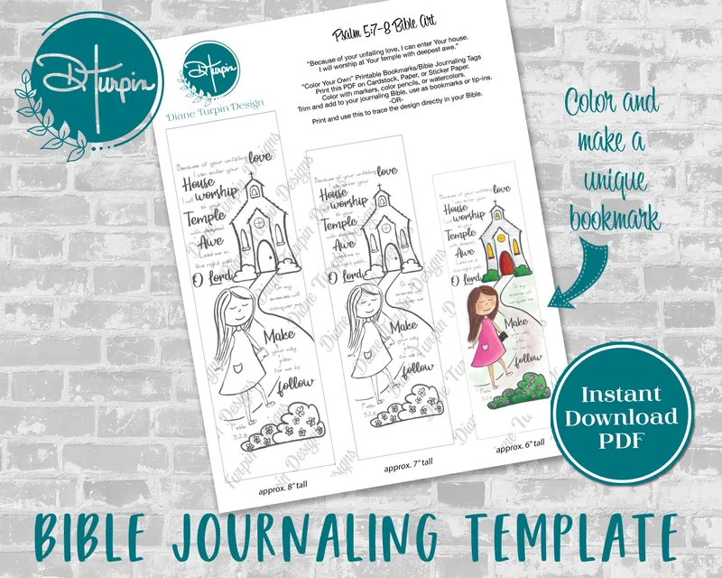 Bible Journaling Verse Art - Margin Art - Bookmark featuring Psalm 5:7-8 - Worship In Awe
