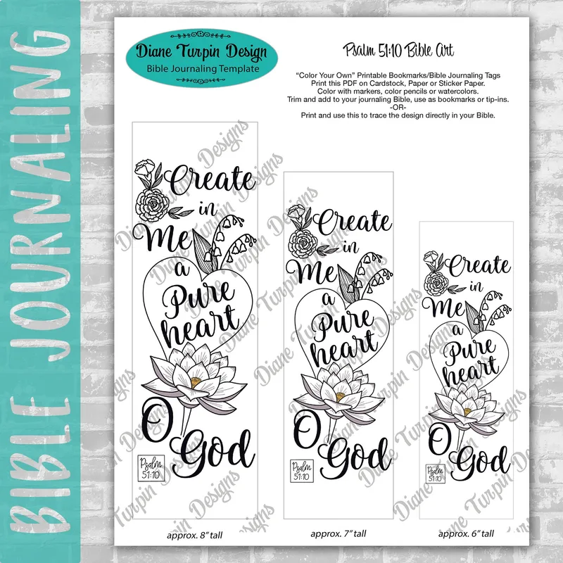 Bible Journaling Verse Art - Margin Art - Bookmark featuring Psalm 51:10 Create in Me a Pure Heart
