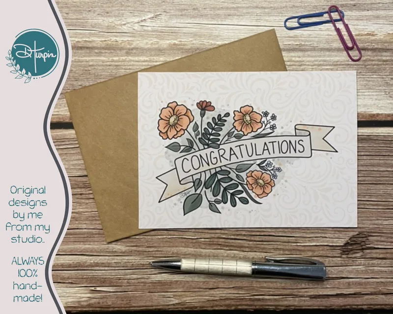 Hand-Drawn Floral Doodle Congratulations Card | Cottage-Core Design | Graduation, Retirement, New Baby, Housewarming | A7 or A2 Sizes